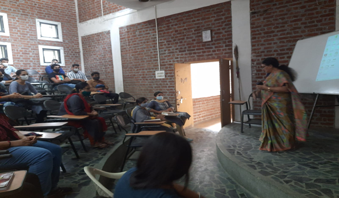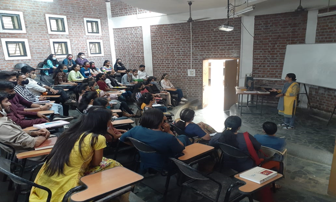 Prof. Nisha Dubey in her discussion with the students stressed the importance of being responsible for the choices that students make for their future. She stressed the importance of being punctual and regular for the various curricular activities organized by the College for the students.