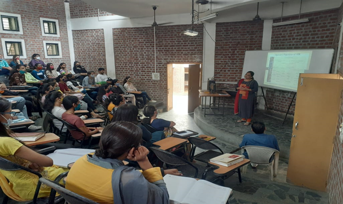 Prof. Rashmi Ghamawala discussed the details of the HR specialization courses, and the opportunities available for HR students in the industry. Discussing the details of the HR field she also talked about the various courses that the students are required to study for their HR specialization.